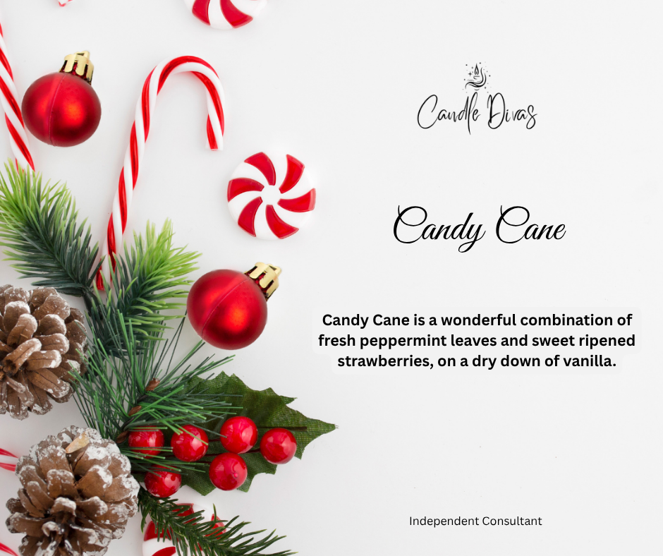 Candy Cane is a wonderful combination of fresh peppermint leaves and sweet ripened strawberries, on a dry down of vanilla.